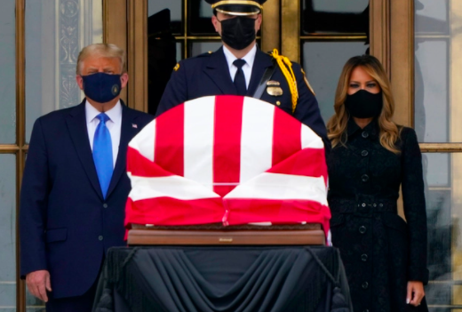 Antes de que Trump saliera de su vehículo la multitud lo recibió con abucheos y gritando «voten para sacarlo», en referencia a las próximas elecciones del 3 de noviembre, y «honren su deseo», en alusión a la última voluntad de Ginsburg, que pidió que sea el gobierno resultante de los comicios quien nombre a su remplazante.