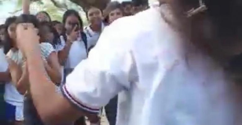 En las imágenes se observa a las menores golpeándose y jalándose el cabello ante la mirada de varios estudiantes. Además, se dan golpes con el puño en la cara y espalda.