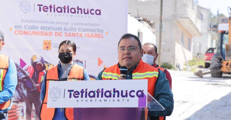 Arranca Pablo Angulo obra de drenaje y pavimento en Tetlatlahuca