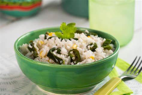 ARROZ BLANCO CON ELOTE Y CHILE POBLANO