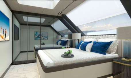 La embarcación, un catamarán 80 Sunreef Power, será entregado en 2020. Posee una suite con baño propio, terrazas, varios salones, spa, garaje para botes inflables y motos de agua
