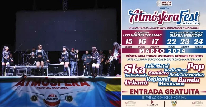 En Pachuca, Hidalgo, estado invitado en esta ocasión a la tercera edición de este Fest, se presentó al elenco artístico y cultural del Atmósfera Fest 2024, y al que se espera la asistencia de 200 mil personas con una derrama de 50 millones de pesos por cada fin de semana.