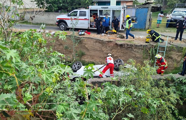 Hasta ese punto, personal experto en extracción vehicular de la Cruz Roja y Emergencias Médicas de Tlaxcala y Protección Civil de Tlaxcala acudieron a fin de rescatar a dos estudiantes que se encontraban atrapados.