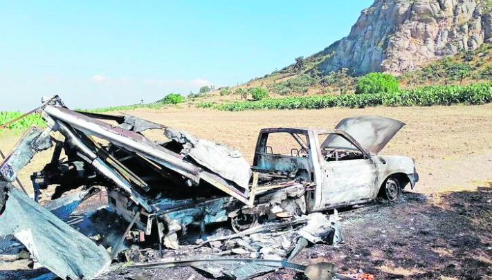 Policías municipales de Epazoyucan recibieron el reporte de vecinos del lugar, mismos que ubicaron sobre un camino de terracería que comunica a dicha población con la comunidad de Nopalapa, los restos del vehículo.