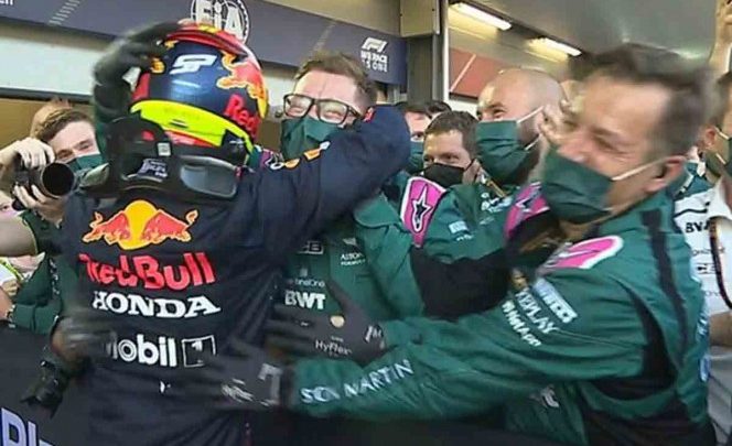 El piloto mexicano Sergio ‘Checo’ Pérez se vio invadido por la emoción tras conseguir su primera victoria de la temporada 2021 en la Fórmula 1 con el equipo Red Bull, luego de imponerse en el Gran Premio de Azerbaiyán, lo que lo hizo ir a abrazarse con los miembros de Aston Martin, quienes compartieron con él en su anterior equipo (Racing Point).