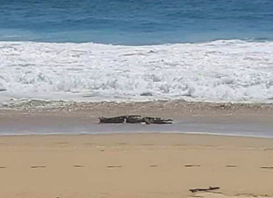 Las autoridades municipales pidieron a la población, prestadores de servicios y visitantes a extremar precauciones en la franja de arena y al ingresar al mar, así como reportar cualquier avistamiento del lagarto.