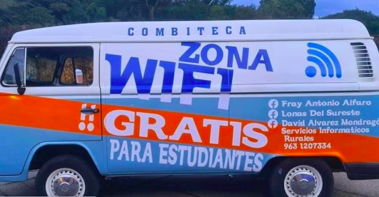 La “combiteca”, como él la llama, cuenta con una antena al interior conectado a un modem que emite la señal entre 50 y 100 metros de distancia; es así como los jóvenes se pueden conectar alrededor del vehículo y utilizar la red.