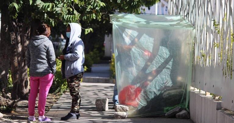 Con cartón y plástico improvisan refugio afuera de hospital para cuidar a sus familiares