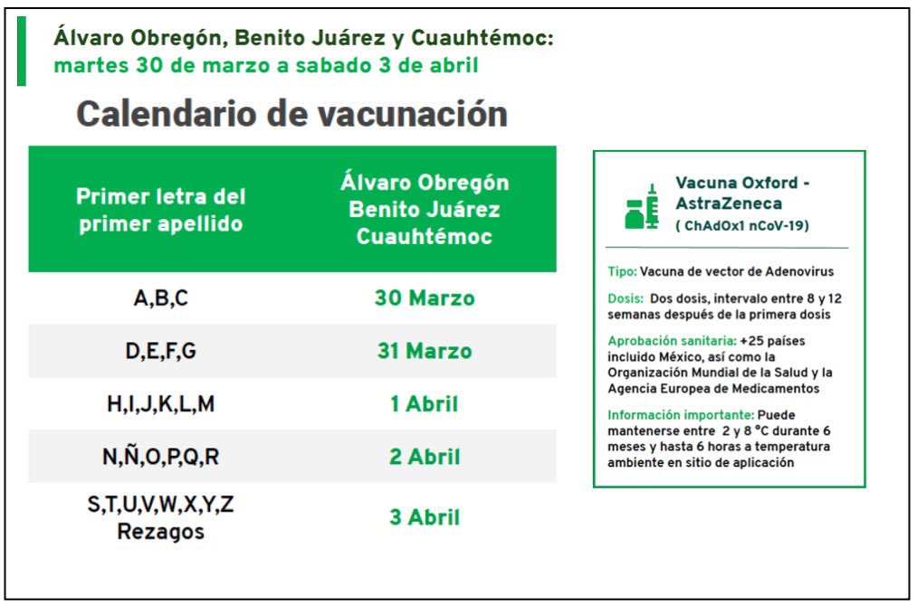 Fechas de vacunación en Álvaro Obregón, Benito Juárez y Cuauhtémoc