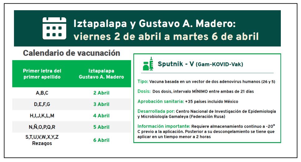 Del 2 al 6 de abril, la vacunación COVID tendrá lugar en las alcaldías Iztapalapa y Gustavo A. Madero.