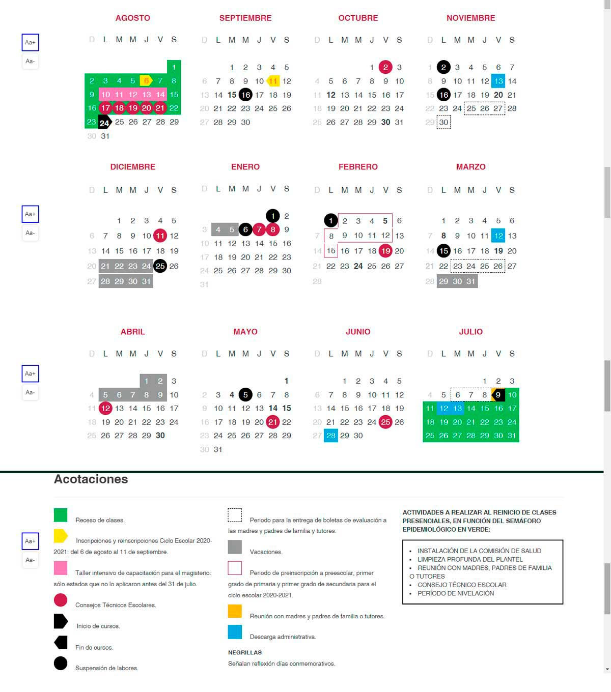 El nuevo calendario marca que el ciclo escolar 2021-2022 dice que el regreso a las “aulas”, si es que el semáforo epidemiológico lo permite, será el 30 de agosto, fecha en la cual arrancará el periodo de valoración diagnóstica, el cual terminará el 10 de septiembre.
