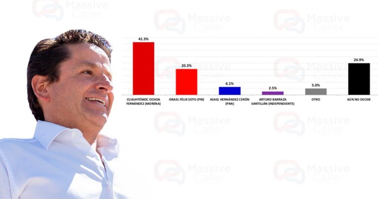 Mientras que, a la pregunta ¿Por cuál candidato votaría?, Cuauhtémoc Ochoa por Morena obtuvo un 38.2% de la preferencia, seguido de Carolina Viggiano del (PRI)con un 24.0%.