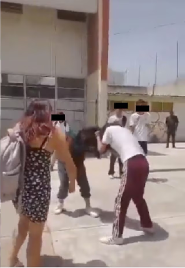 La pelea se habría registrado fuera del horario de clases, cerca de la secundaria, y en video se observa a dos adultos participar como alentadoras de la presunta agresora.