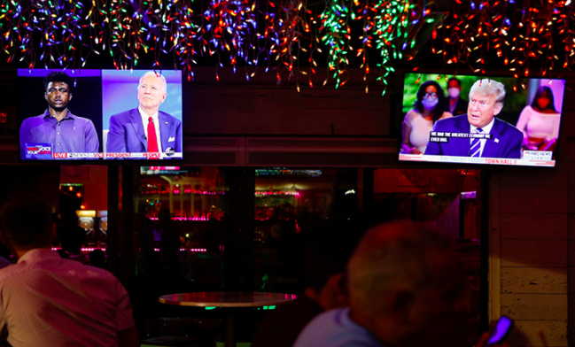 El presidente estadounidense Donald Trump ofreció el jueves una defensa de su gestión de la pandemia de COVID-19 en un evento televisado, mientras que su rival Joe Biden, en un foro transmitido simultáneamente por otra cadena, lo acusó de no hacer “nada”.