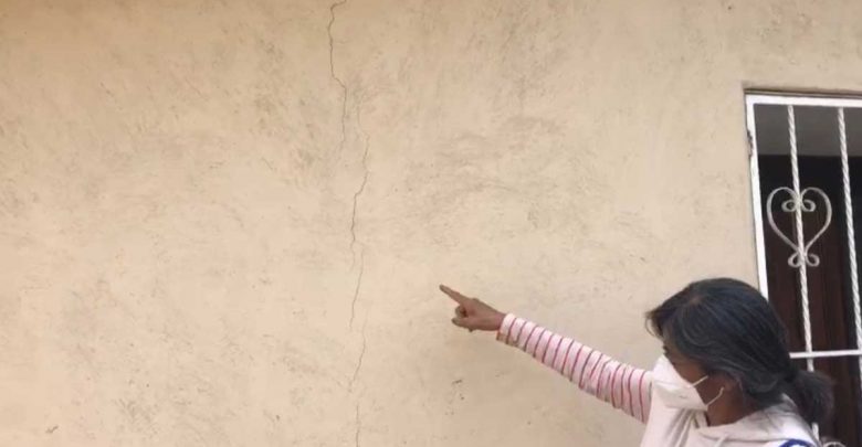 Durante las últimas horas, 8 familias señalaron que sus viviendas han presentado cuarteaduras que no estaban antes de que ocurriera el fenómeno natural, entre la población hay temor ante el riesgo de que el socavón siga presentando derrumbes.