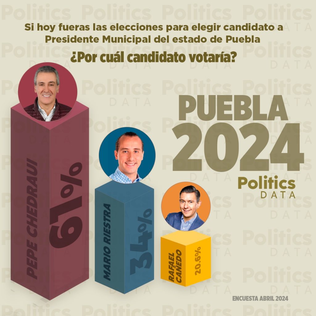Una encuesta de Politics Data coloca a Pepe Chedraui a la cabeza de las preferencias electorales a la alcaldía de Puebla.