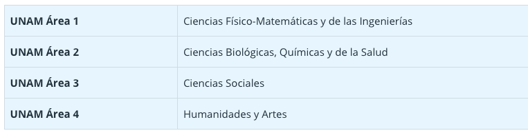 - La UNAM imparte 130 carreras que se distribuyen en 4 áreas de conocimiento: