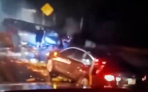 Los primeros reportes refieren que en la carambola estuvieron involucrados dos tráileres, un camión, un taxi y una camioneta tipo van.