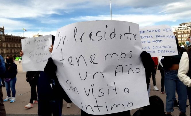 La mañana de este miércoles familiares de presos se manifestaron en el Zócalo de la Ciudad de México.