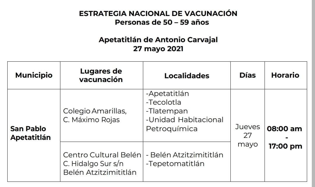 Inicio/Fechas y sedes: Vacunación de adultos de 50 y embarazadas por municipios en Tlaxcala/FB_IMG_1621981827030 FB_IMG_1621981827030