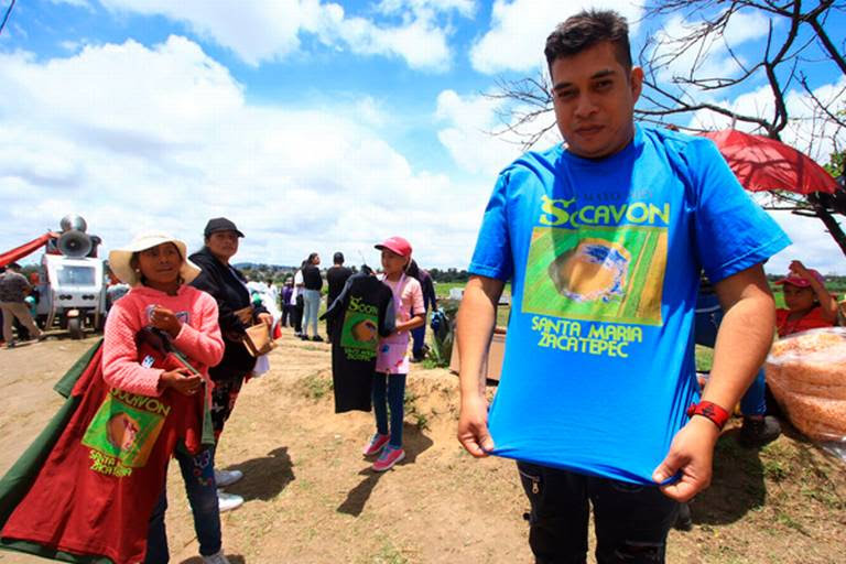 Esta producción es la segunda que se oferta en torno al socavón, ya que la semana pasada, otro grupo de pobladores de la comunidad de Santa María Zacatepec, puso a la venta otro diseño de camiseta, pero éste tenía como grabado principal el pan oficial de este hundimiento.
