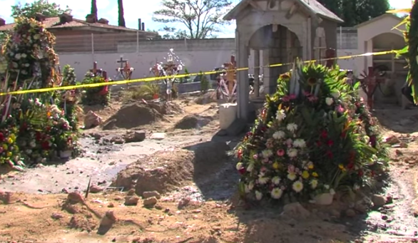 En este lugar un panteonero realizaba trabajos a bordo de una retroexcavadora, cuando la maquinaria topó con un objeto sólido.