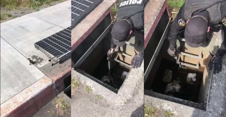 Un agente del Equipo de Compromiso de Seguridad Comunitaria (CSET) del Departamento de Policía de Eureka, en California, Estados Unidos, salvó con ayuda de pinzas al menos a tres patos bebés que cayeron a una coladera de esa ciudad, ubicada en el condado de Humboldt.
