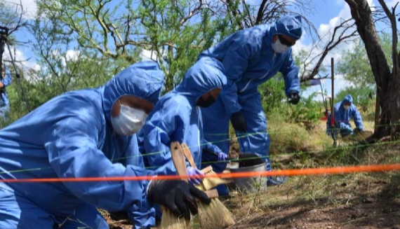 Por otro lado,  en el área del Chichiquelite,  donde se realizó el hallazgo el pasado 19 de septiembre, continúa el procesamiento por parte del personal especializado de Servicios Periciales, que acompañan al arqueólogo forense, junto con elementos de la  Agencia Ministerial de Investigación Criminal ( AMIC), de la  Secretaría de la Defensa Nacional  (Sedena), la  Guardia Nacional ( GN), la S ecretaría de la Marina  (Semar).