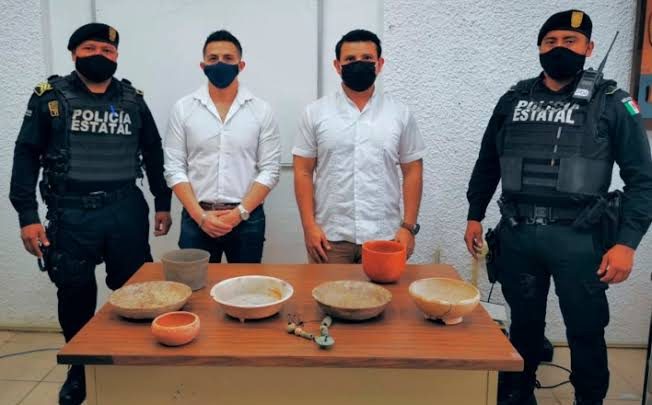 “El instituto Nacional de Antropología e Historia recuperó un lote de 8 piezas arqueológicas conformadas por 7 piezas de cerámica y una pieza de jade, forma parte de 3 operativos realizados como parte de las acciones de recuperación del patrimonio cultural”.