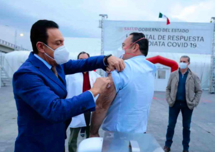El mandatario estatal acudió a supervisar la instalación de un puesto de vacunación en el Hospital de Respuesta Inmediata ubicado en la explanada Bicentenario, así como el inicio del periodo de inoculación al personal que labora en el mismo y a grupos vulnerables.