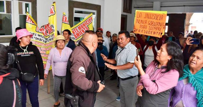 Un grupo de al menos 100 pobladores de la comunidad de San Felipe Cuauhtenco, municipio de Contla de Juan Cuamatzi, irrumpió en la presidencia municipal con la exigencia de que el ayuntamiento ratifique la revocación de su representante ejidal, Crisóforo Cuamatzi Flores.