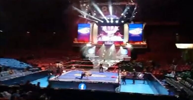 Uno de los espectadores captó el momento exacto en que los luchadores se bajan corriendo del ring ante el sismo de 6.9 grados.