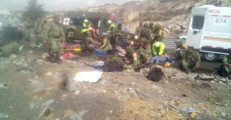 En el kilómetro 208+400 llegaron servicios de emergencia de SUMAV y CAPUFE; para la atención pre hospitalario de los militares, quienes serán trasladados a hospitales de Orizaba y Tehuacán.
