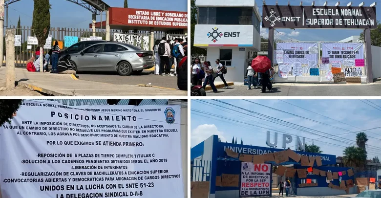 El conflicto en las escuelas Normales de Puebla se prolongó por tercer día consecutivo, considerando que el despido masivo de los directores de las diferentes escuelas formadoras de maestros fue entre lunes y martes, lo que detonó protestas.
