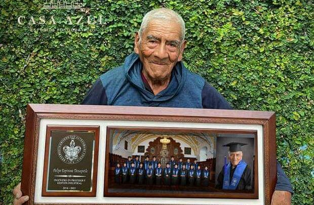 A sus 84 años de edad, Felipe Espinosa Tecuapetla egresó de la primera generación de la carrera de Ingeniería en Procesos y Gestión Industrial de la Benemérita Universidad Autónoma de Puebla (BUAP) que se imparte en el Campus de San José Chiapa.