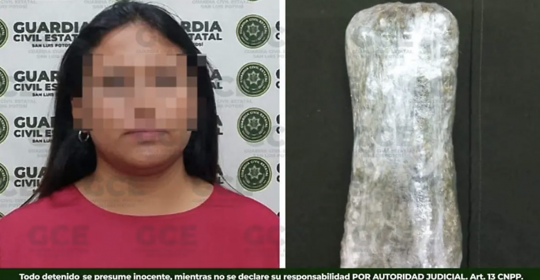 La mujer presuntamente intentó ingresar un paquete de marihuana de 167 gramos que llevaba oculto entre sus pertenencias, por lo que, ante la posible actividad delictiva, fue detenida por los elementos ubicados en los filtros de acceso y tras los trámites, quedó a disposición de las autoridades.