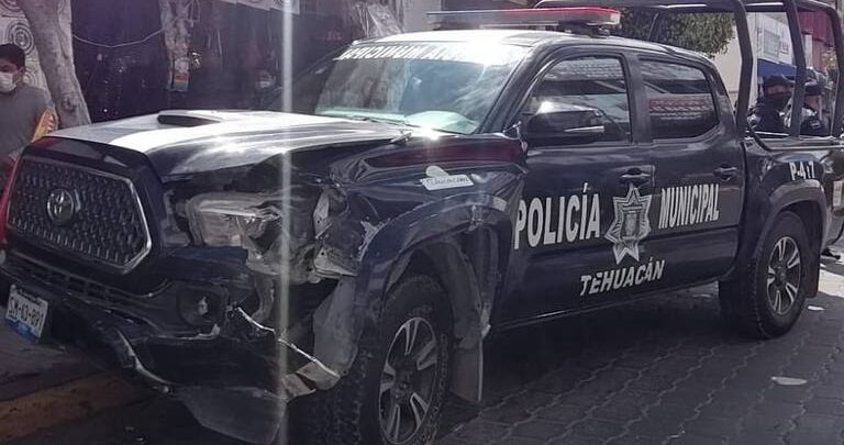 Patrulla de Tehuacán choca contra un automóvil en pleno centro