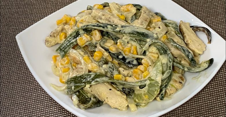 PECHUGAS DE POLLO CON RAJAS DE CHILE POBLANO Y REPOLLO