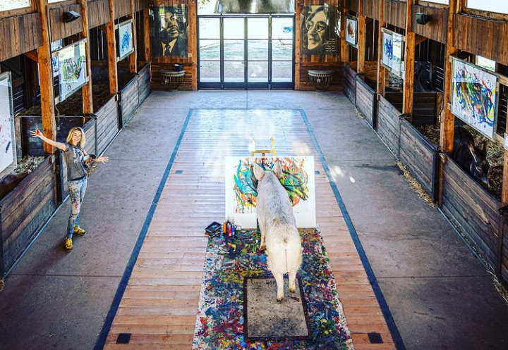 Todo el dinero recaudado por esta y todas las obras vendidas por Pigcasso es utilizado para mantener a los huéspedes de Farm Sanctuary, su hogar, explicó su cuidadora.
