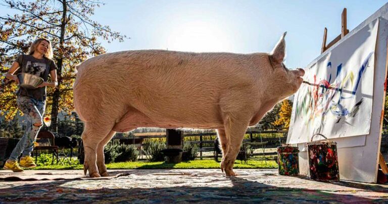 “Pigcasso no es tan diferente a otros cerdos, es inteligente, curiosa e inteligente. La única diferencia significativa es que tiene un montón de talento cuando pinta”, señaló Joanne Lefson durante una entrevista.
