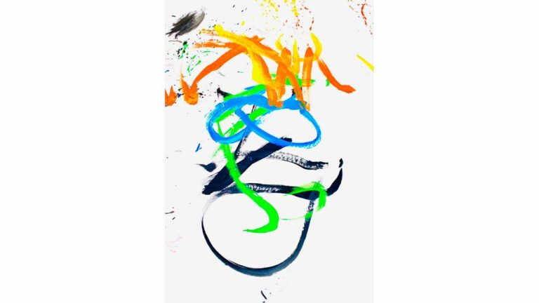 La obra fue pintada en sólo unos minutos, según Joanne, y está realizada sobre un lienzo blanco y pintura en tonos anaranjados, azules, verdes y amarillos.