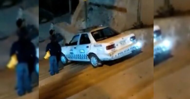 Policía ebrio baja escaleras con todo y patrulla en Oaxaca: VIDEO