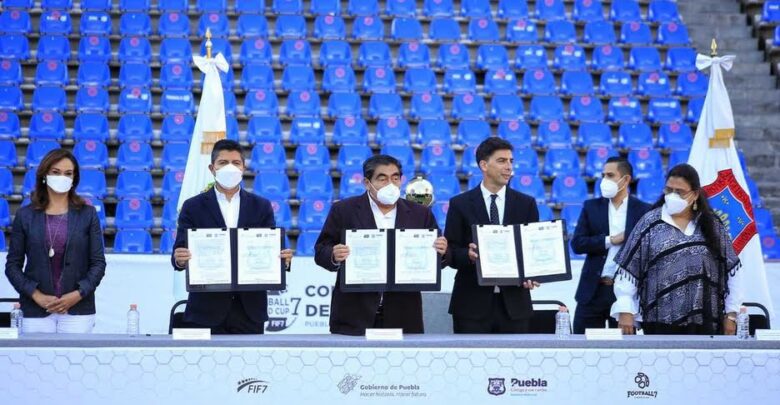 De manera oficial, Puebla capital fue presentada como la próxima sede del Campeonato Mundial de Futbol 7 para el 2023, razón por la que el gobernador del estado, Miguel Barbosa Huerta, así como el presidente municipal, Eduardo Rivera Pérez, signaron convenio de colaboración para albergar la contienda deportiva.