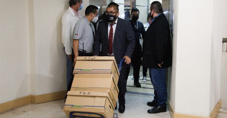 Las cajas con 27 tomos integran el expediente contra Francisco García Cabeza de Vaca por presuntos delitos federales de delincuencia organizada, defraudación fiscal y lavado de dinero.
