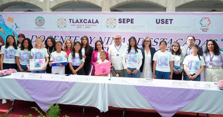 En el marco del Día Internacional de las Mujeres y las Niñas en la Ciencia, las diputadas Lorena Ruiz García, Marcela González Castillo y Alejandra Ramírez Ortiz; la presidenta honorífica del Sistema Estatal para el Desarrollo Integral de la Familia, Mariana Espinosa de los Monteros Cuéllar; Homero Meneses Hernández, secretario de Educación del Estado; Jakqueline Ordoñez Brasdefer, presidenta de la Comisión Estatal de Derechos Humanos; María Azucena Jiménez Pacheco, subprocuradora de la Procuraduría General de Justicia de Tlaxcala; y Norberto Sánchez Briones, Director de Gobernación, entregaron reconocimientos a niñas que integran el programa “Tecnolochicas Tlaxcala 2023”, en coordinación con la Comisión de Igualdad de Género y Contra la Trata de Personas de la LXIV Legislatura y la Secretaría de Educación Pública del Estado, a través de la Unidad de Género y Cultura de Paz.