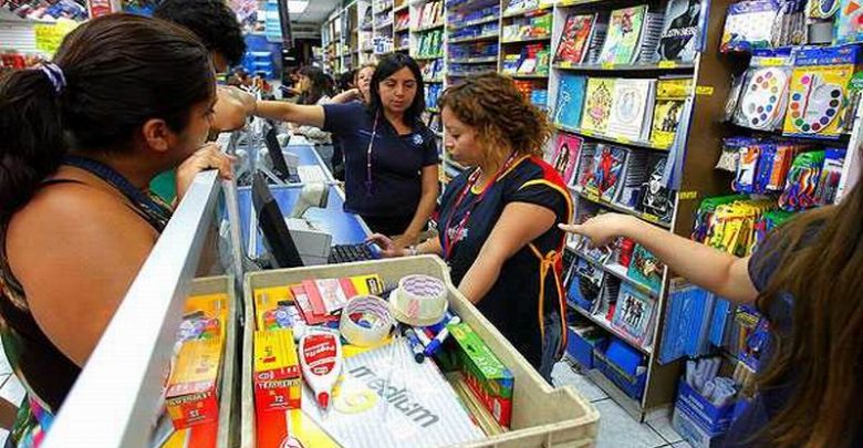 La agrupación informa que la venta de útiles escolares representa 25.000 millones de pesos (más de 1.130 millones de dólares) en esta época, pero la cifra decreció 70 %, el equivalente a 18.000 millones de pesos (casi 815 millones de dólares).