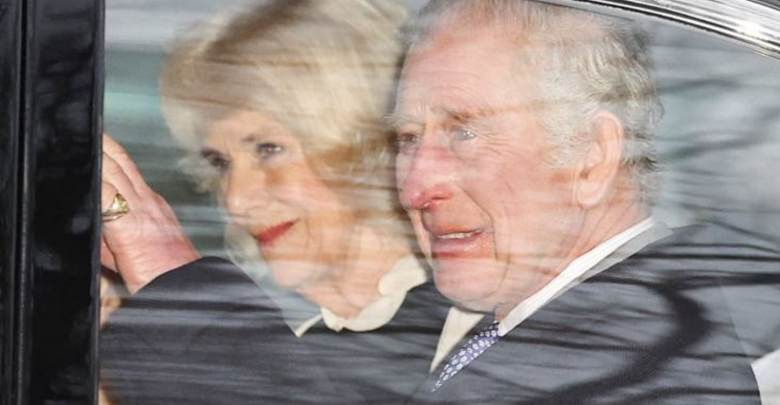 El monarca, de 75 años, y su esposa, la reina Camila, que acababan de recibir una breve visita del segundo hijo del rey, Enrique, recién llegado de Estados Unidos, saludaron sonrientes a la multitud desde el asiento trasero del automóvil.