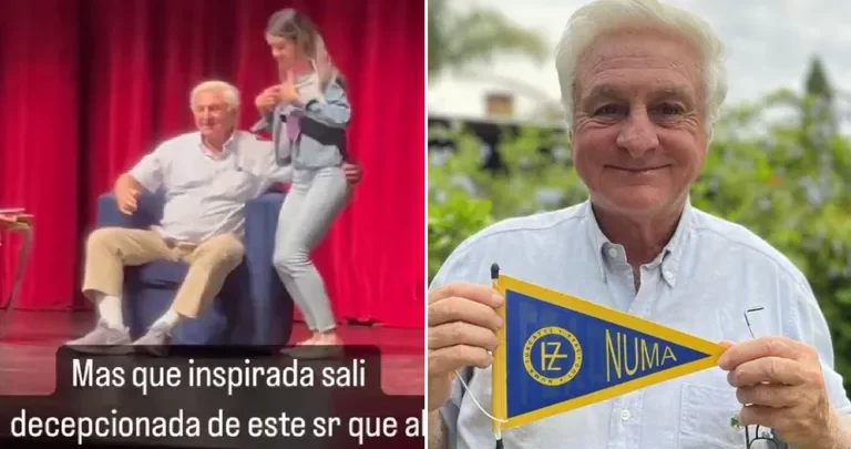 En el clip que solo dura unos segundos, se observa a Roberto Canessa sentando en el escenario del foro, saludando a una joven que se acercó a él para tomarse una foto, pero en el momento que ella se hinca para ponerse a su altura, él le toca el trasero y mantiene su mano muy cerca de esa parte del cuerpo, lo que indignó a las redes sociales.