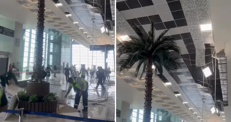 En el clip que circula, principalmente en X, antes Twitter, se observa cómo la sección afectada fue acordonada y personal del AIFA recoge escombros. Mientras en el techo se observa un enorme agujero y escombros colgando en las alturas.