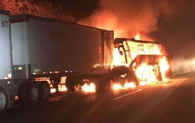 El conductor de la pesada unidad resultó lesionado mientras que fue necesaria la intervención del cuerpo de bomberos para apagar la unidad.